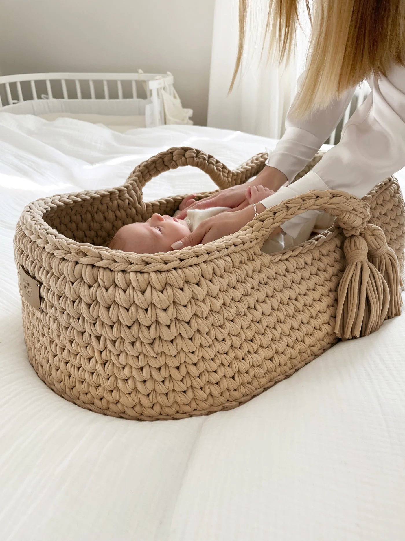 Dieser Babykorb bietet einen sicheren und gemütlichen Rückzugsort für Neugeborene, komplett handgefertigt mit Liebe und Sorgfalt. Mit seinen weichen Baumwollwänden, einer gepolsterten Matratze und einem kuscheligen Kopfkissen sorgt er für einen ruhigen und geborgenen Schlaf. Dank der praktischen Griffe ist der Korb flexibel und lässt sich leicht transportieren, sodass das Baby immer in der Nähe sein kann – ob zu Hause oder unterwegs.