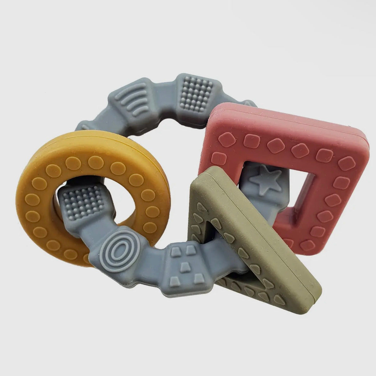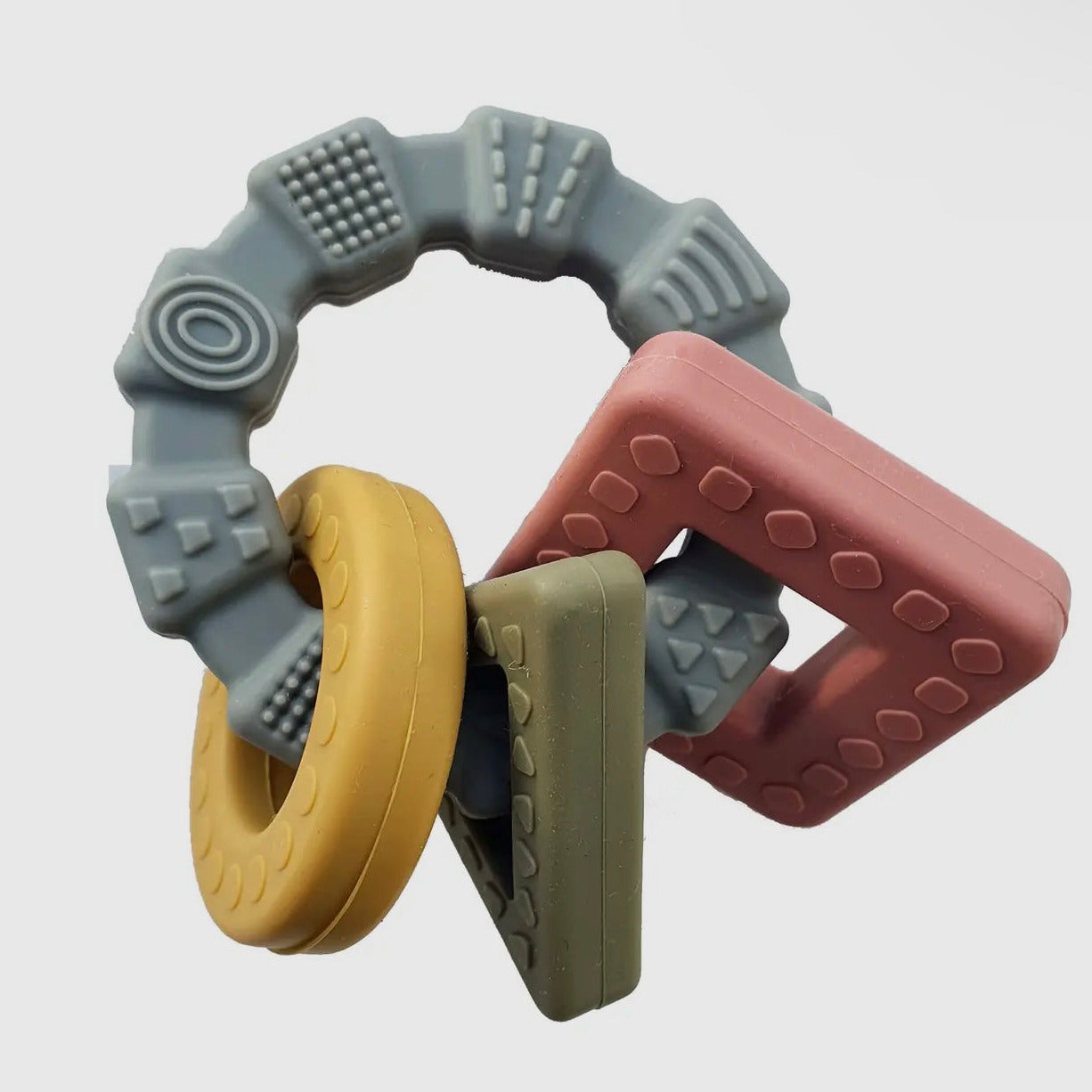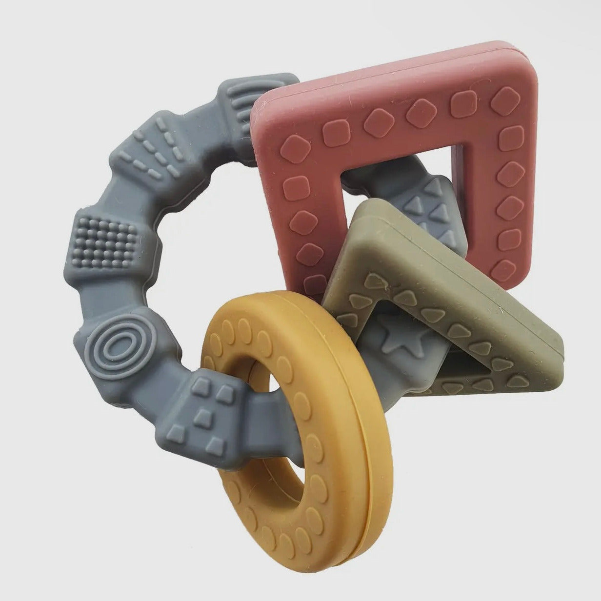 Der Ring hat eine schöne Struktur zum Erkunden und zum Kauen und er ist für kleine Hände leicht zu greifen und zu halten.