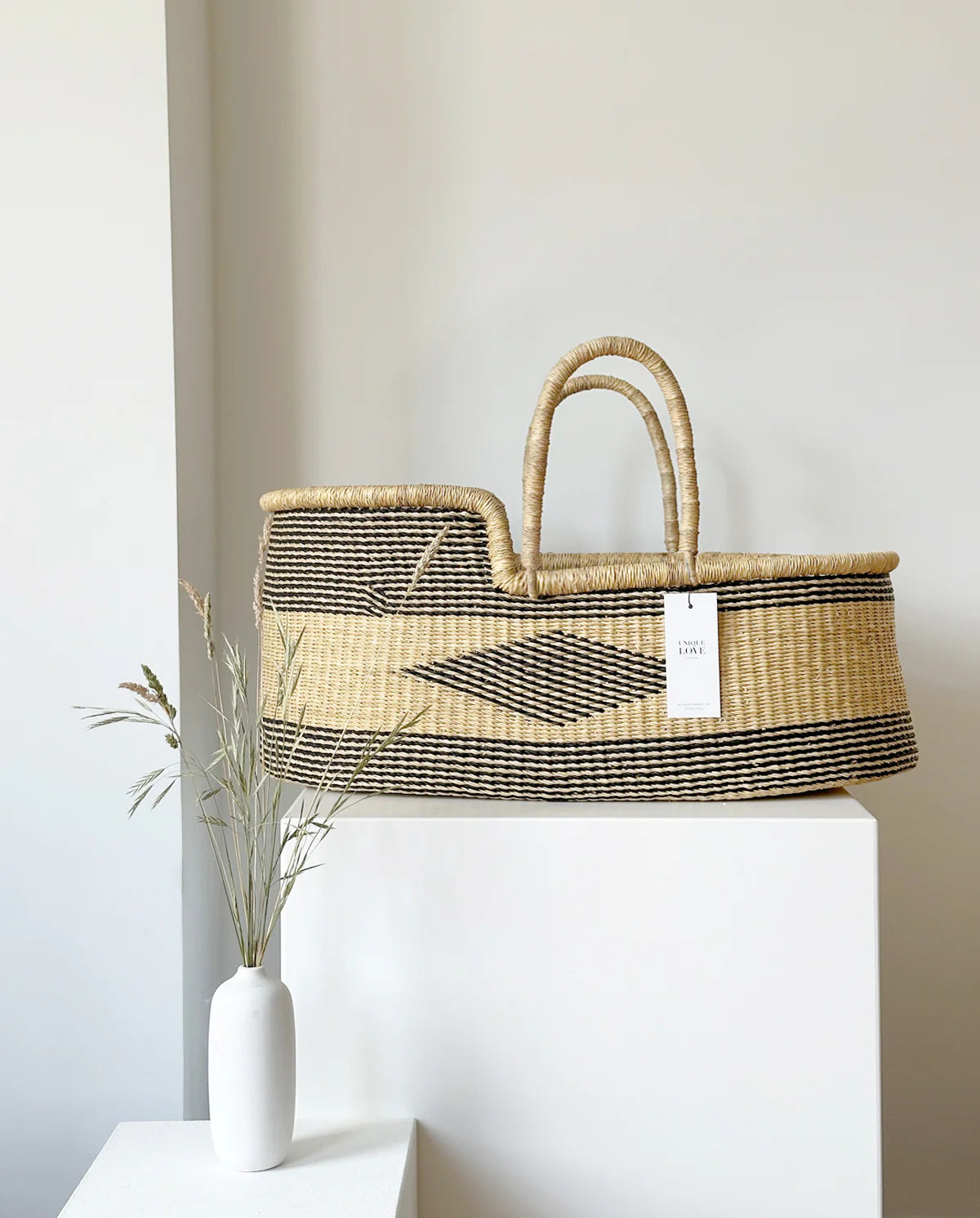 Unsere bezaubernden Moseskörbe aus der Kollektion „In Harmony with Nature“ bieten nicht nur einen gemütlichen und sicheren Rückzugsort für dein Baby, sondern setzen zugleich ein stilvolles Zeichen in jedem Raum. Jeder Korb wird in 100% Handarbeit mit Liebe und Sorgfalt gefertigt, wodurch jedes Stück ein Unikat ist, das die Traditionen kunstvoller Handwerkskunst weiterleben lässt.
