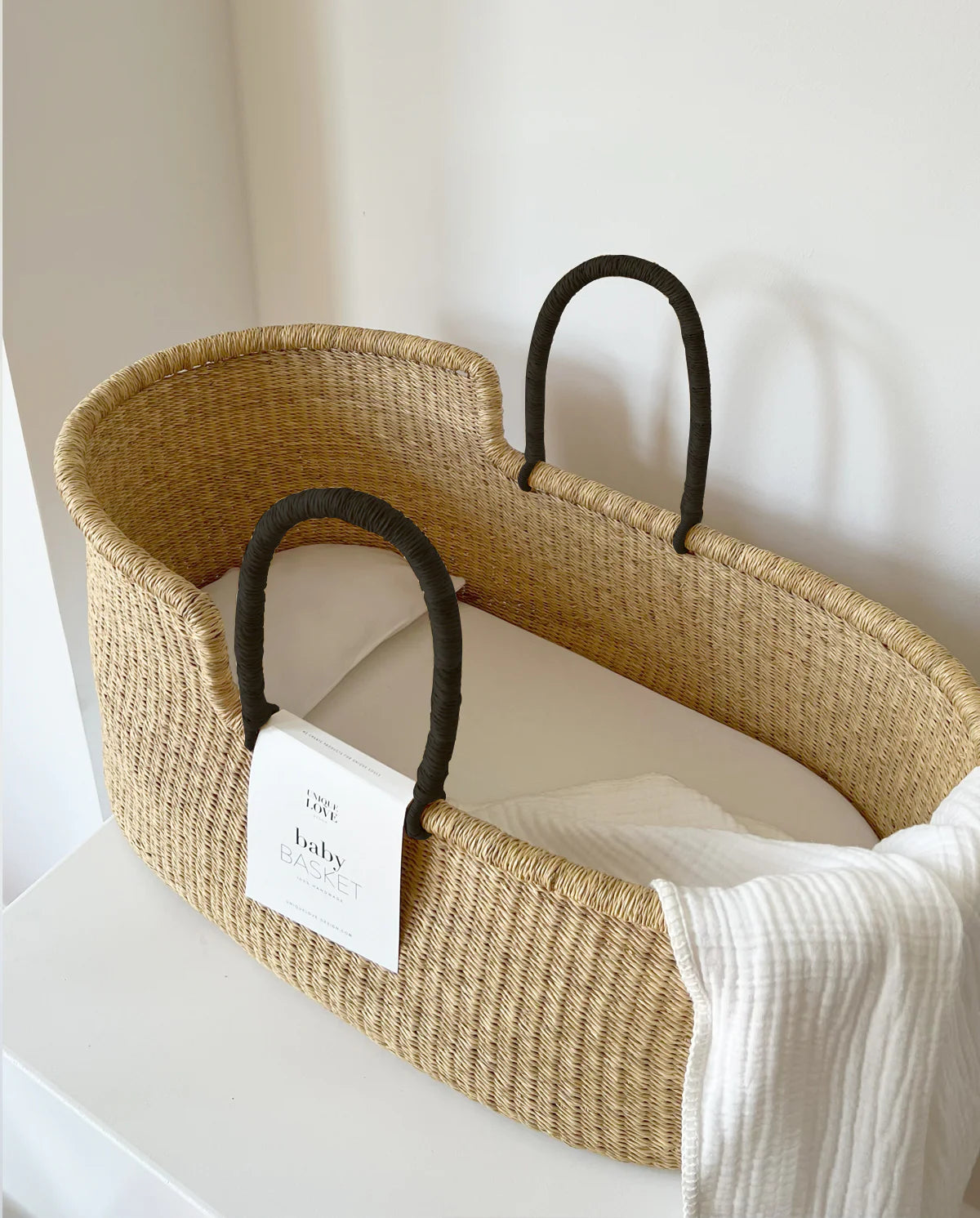 Unsere bezaubernden Moseskörbe aus der Kollektion „In Harmony with Nature“ bieten nicht nur einen gemütlichen und sicheren Rückzugsort für dein Baby, sondern setzen zugleich ein stilvolles Zeichen in jedem Raum. Jeder Korb wird in 100% Handarbeit mit Liebe und Sorgfalt gefertigt, wodurch jedes Stück ein Unikat ist, das die Traditionen kunstvoller Handwerkskunst weiterleben lässt.